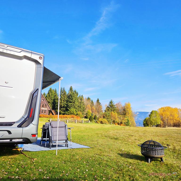 🚐 Stellplatz Havlovka offers a quiet and safe parking space for 4 motorhomes and caravans with the possibility of connecting to electricity, drinking water, a grey water drain and a chemical toilet in the heart of the Ore Mountains, above the spa town of Jáchymov. Thanks to its location at an altitude of 920 meters, you can enjoy clean air, views of the mountain landscape and complete peace away from civilization.