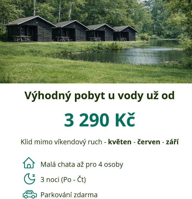 Autocamp Kačer is located next to the clean lake Ovčáry with a beach 🏖️ and offers maintained camping pitches with electricity connection on a grassy area, accommodation in small 4-bed and large 8-bed cottages with their own kitchen and bathroom.