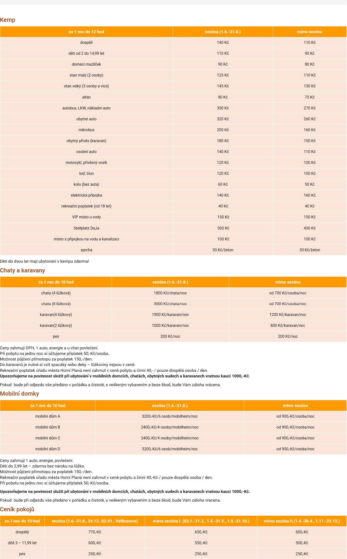 Camping u Kukačků and Pension DaJa is located in a quiet area of South Bohemia clean the water reservoir Lipno, about 2 km from the village of Horni Plana and nearby Šumava. Ideal for families, sportsmen, fishermen, hikers and those seeking tranquility. Accommodation in mobile homes, cottage, caravans and tents with a fenced area. The camp sale boat for fishing, bike, pedal boats, canoes, kayaks.
