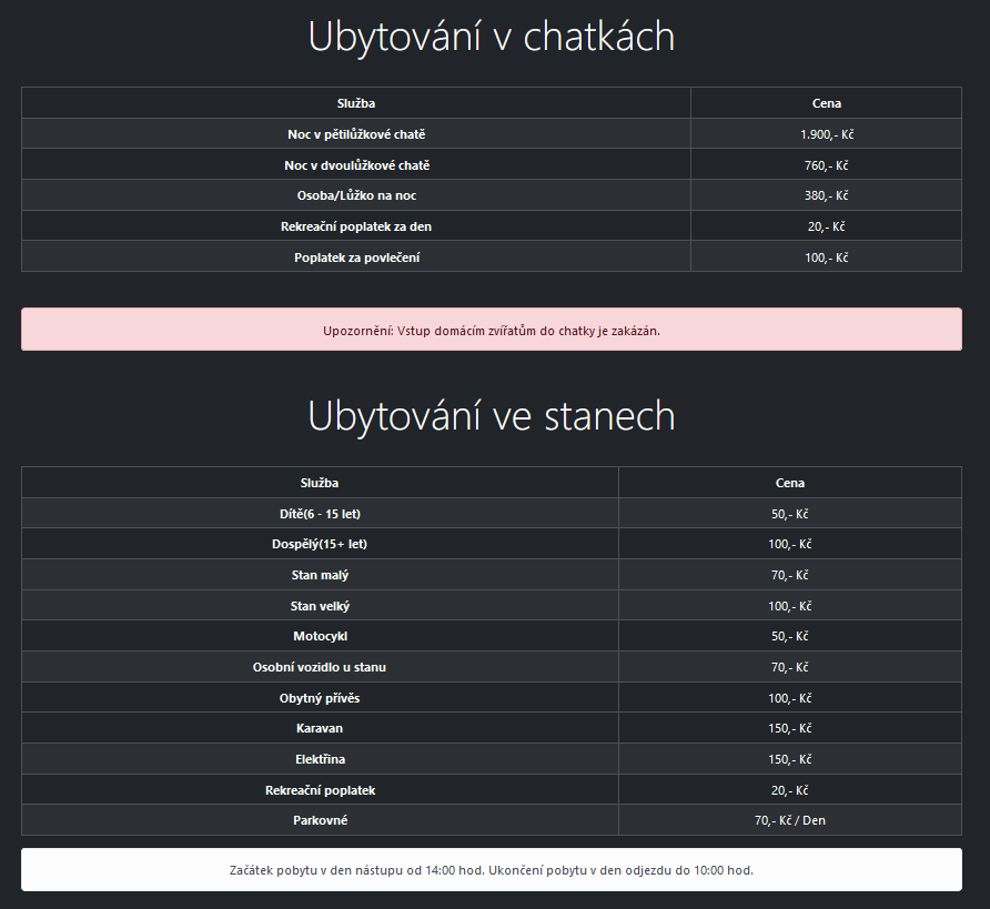 chatka 5L 1.900 Kč/den